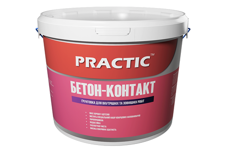 Бетон-контакт PRACTIC застосовується на невбираючих або слабо вбираючих поверхонь (монолітний бетон, бетонні перекриття) перед нанесенням гіпсових, вапняних та інших штукатурок, клейових сумішей, перед приклеюванням гіпсових плит. Може використовуватися в якості адгезійної ґрунтовки для обробки покриття з керамічної плитки перед повторним облицюванням керамічною плиткою. Застосовується для внутрішніх і зовнішніх робіт.