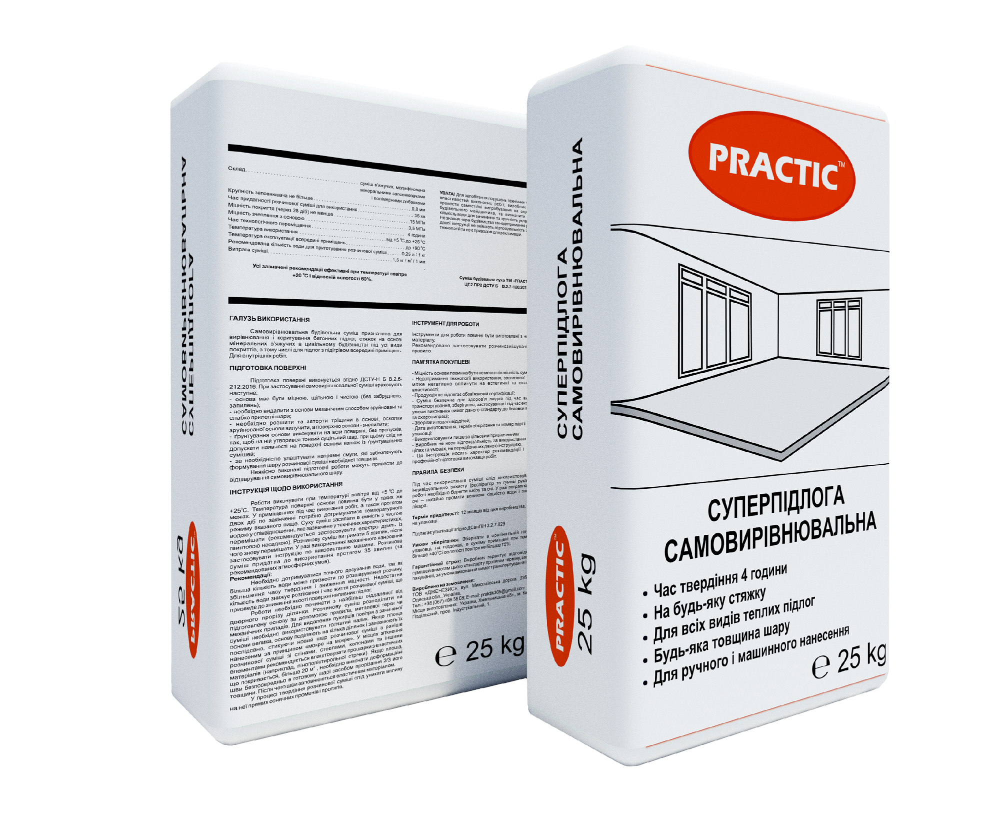 Самовирівнювальна будівельна суміш ТМ «PRACTIC» призначена для вирівнювання і коригування бетонних підлог, стяжок на основі мінеральних в'яжучих в цивільному будівництві під усі види покриттів, в тому числі для підлог з підігрівом всередині приміщень. Для внутрішніх робіт.